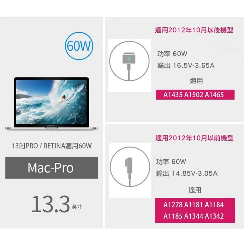 - Type-C母轉磁吸Magsafe2充電線(mac專用)
