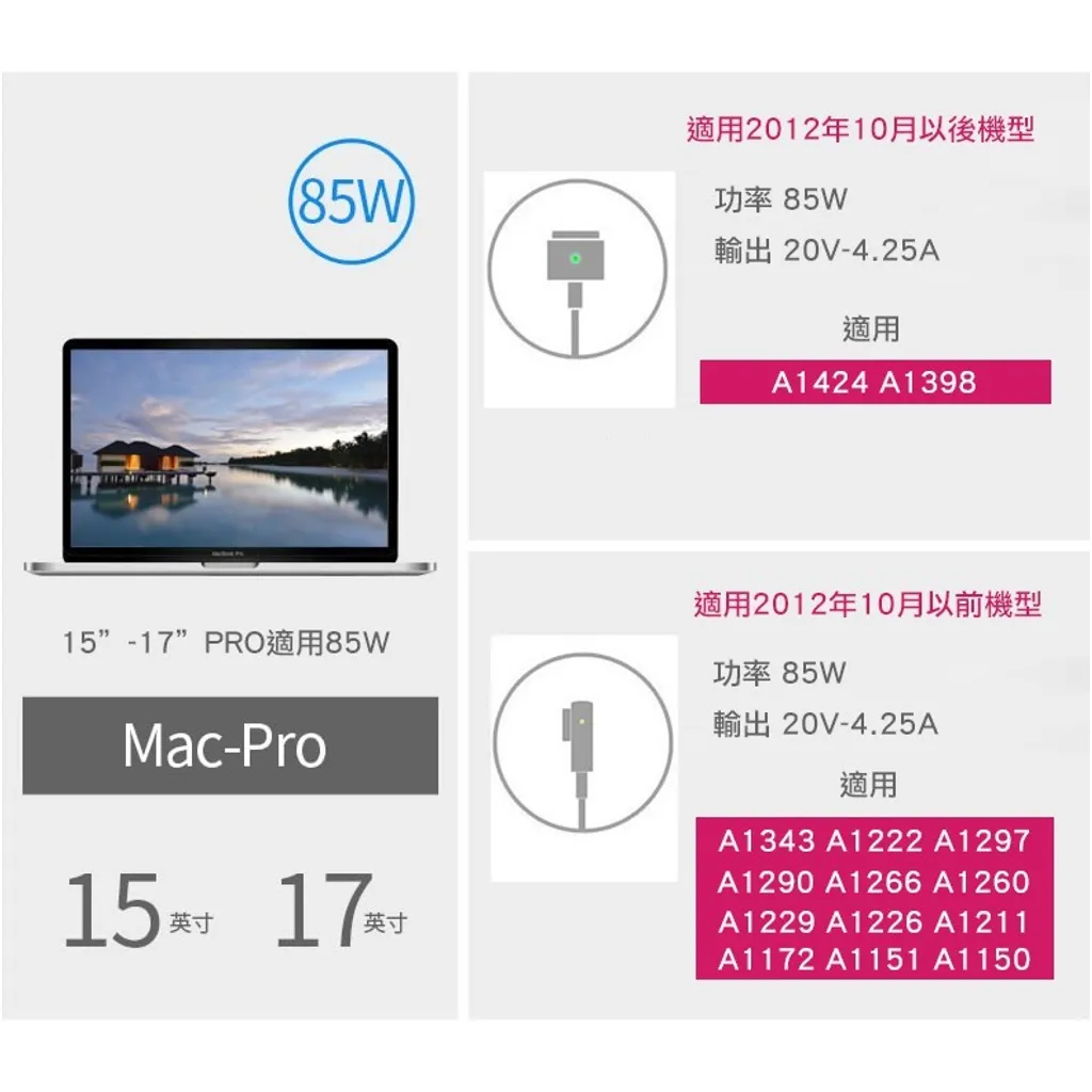 - ● 需搭配支援PD雙公Type C線連接TYPE-C PD充電器使用,PD充電器輸出功率需在45W以上(可支援60W和85WPD充電器)